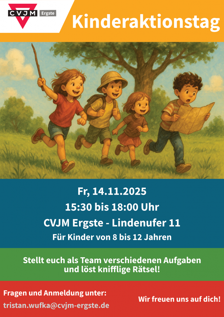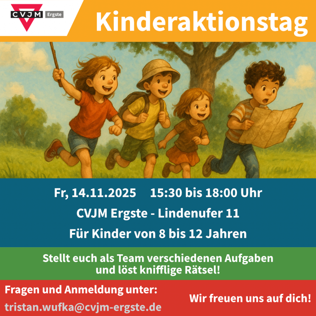 Wir starten am 14.11. um 15:30 Uhr. Ort ist unser CVJM Heim (Lindenufer 11, 58239 Schwerte).Um eine kurze Anmeldung per Mail an tristan.wufka@cvjm-ergste.de wird gebeten.
